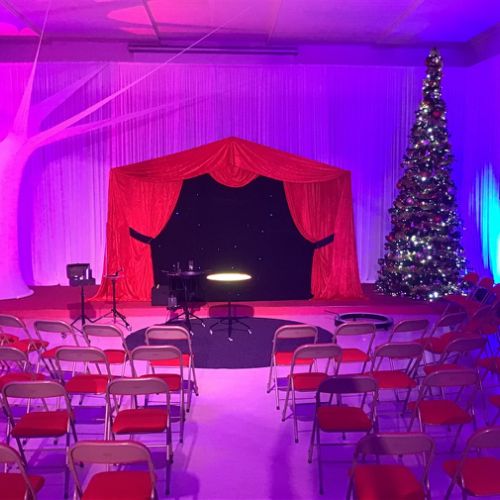 Mes spectacles de bulles de savon sont modulables et l’installation peut s'adapter à de nombreuses configurations de salles de spectacles, salles des fêtes, gymnases...avec ou sans scène. Le spectacle peut être proposé clés en mains avec la sonorisation et la lumière.